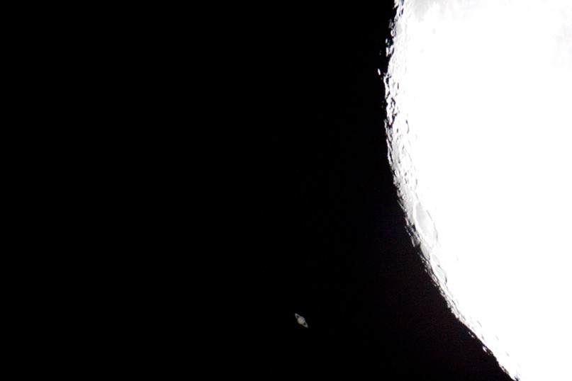 Als mich das Klingeln aus dem tiefen Schlaf holte, schaute ich müde aus dem Dachfenster in Richtung Osten – da waren Sterne zu sehen. Schnell sprang ich aus dem Bett und stand 5 Minuten später vor der Tür. Im Südwesten hing der Mond am Himmel, dicht bei ihm eine winziger Punkt, der Saturn. Jetzt mußte alles schnell gehen, da ich aufgrund des Wetters nichts vorbereitet hatte. Ich mußte noch 5 Minuten zur Sternwarte fahren und mit einem Satz wollte ich auf mein Fahrrad aufspringen – dachte ich zumindest. Leider ist das hintere Ritzel der Radnarbe abgenutzt und damit drehte die Pedale durch und ich lag lang auf der Straße unter meinem Rad. Ganz benommen und den Blick Richtung Mond, richtet ich mich auf und versuchte jetzt etwas langsamer auf das Rad zu kommen – man tat das weh. Mein Knie schwoll an und mit schmerzverzehrten Gesicht und noch am ganzen Körper zitternd fuhr ich zur Sternwarte.