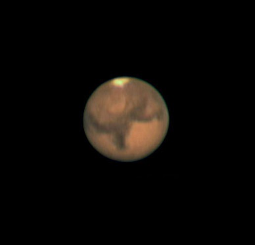 Der Sommer 2003 begann mit einer fast 2 Monate langen Trockenperiode. Als im Juli der Mars die 18 Bogensekundengrenze überschritt, begann er als Fotoobjekt interessant zu werden und Dank des fast beständig guten Wetters konnten zahlreiche Bilder angefertigt werden. Das erste entstand am 7.7.2003 um 3:30 MESZ.