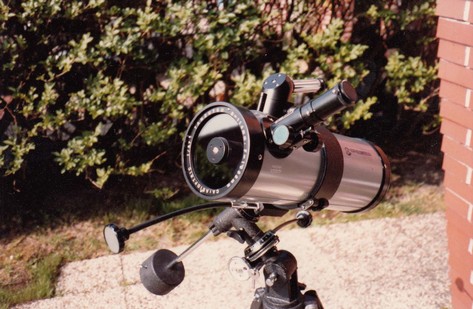 Den Nachfolger dieses Teleskops kaufte ich im Jahre 1991, einen katadioptischen Newton mit 114/1000 mm. Dieses Bresser Teleskop erwies sich als relativ schlechte Optik, durch den serienmäßigen Einbau einer Barlowlinse in den Okularauszug und einer eigentlichen Spiegelbrennweite von 500 mm.
