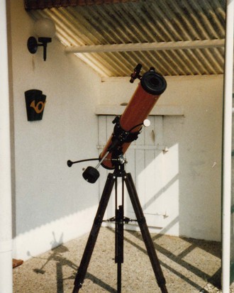 Mit 14 Jahren schenkte mir der Besitzer der Sternwarte ein eigenes Spiegelteleskop mit 114 mm Spiegeldurchmesser und 900 mm Brennweite der Firma BOB Optik, der Vorgänger von Bresser. Welch eine Freude, ich hatte ein eigenes Spiegelteleskop, mein ganzer Stolz. Zu der Zeit war dieses Instrument, welches heute eher belächelt wird, schon eine gehobene Ausrüstung eines Amateurastronomen.