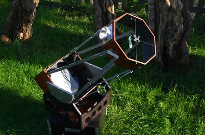 Ein Wunderwerk ist auch das Hofheim Instruments 8 Zoll Dobson, groß wie ein Schuhkarton und mitunter aus Zollstöcken gebaut.